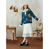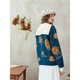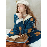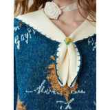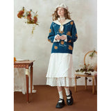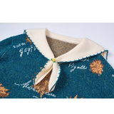 ゴッホが描いた『向日葵』にオマージュを捧げるニットセーター。大輪の花を咲かせた向日葵が存在感たっぷりに描かれています。アイボリーのセーラーカラーが知的で文学的な薫りを放っており、首元の小さな結びが控えめな愛らしさを醸し出しています。