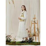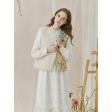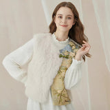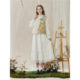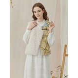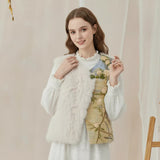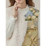 ゴッホが描いた『花咲くセイヨウナシの木』にオマージュを捧げるボアベスト。前面の片方と背面には柔らかなボアの仕立てとなっており、前面のもう片方には鮮やかな油彩画が描かれています。装飾は控えめながら、胸元にあしらわれた小さなリボンがアクセントとなっています。芸術性と洗練さを兼ね備えたアイテム。