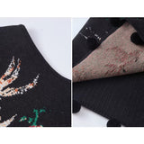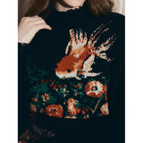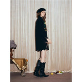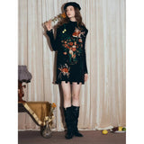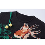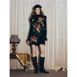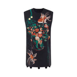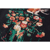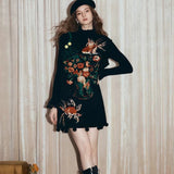 ゴッホが描いた『百日草とゼラニウムのある花瓶』にオマージュを捧げるニットワンピース。胸元から裾へと広がるように花々に加えて金魚が織り描かれています。静かな水中の世界を閉じ込めたような幻想性と、どこか退廃的な気配を併せ持ったデザイン。裾にあしらわれた丸みのある装飾によって、わずかな愛らしさを加えています。