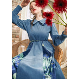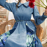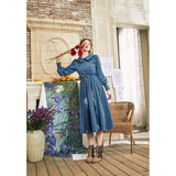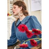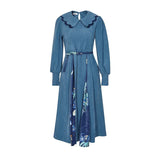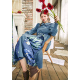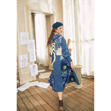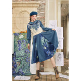 ゴッホが描いた『アイリス』にオマージュを捧げるコーデュロイワンピース。丸みを帯びた大きな襟と繊細なギャザー袖が特徴的。ウエストベルトで静かに輪郭を整えながら、裾が広がることで見える油彩画に心惹かれます。アートとモダンを融合させたようなアイテム。