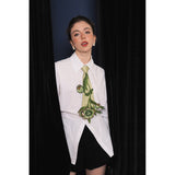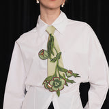 クリスマスローズの花をモチーフにした刺繍ネクタイ。自然界の繊細な美しさを表現するために、細かい刺繍で花や葉がリアルに表現されています。施された刺繍は立体感があり、アート作品のような仕上がりとなっています。