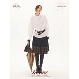 黒を基調に、裾に向かって静かに表情を変えるスカート。黒地の落ち着きから、裾先でクラシカルなチェック柄が現れる二層の構成が印象的。控えめなボリューム感とミディ丈のバランスが、品のある日常と物語性を同時にまとわせています。素朴さの中に知性と郷愁を忍ばせた佇まいをつくり出しています。