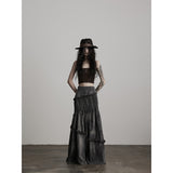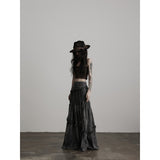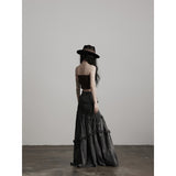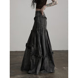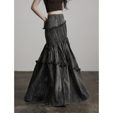 Dark Gray Frill Mermaid Long Skirt