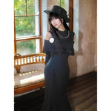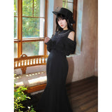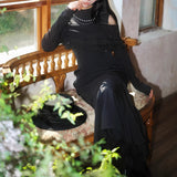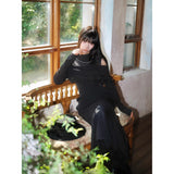 歩みや佇まいの一瞬一瞬に余韻を残しながら、どこか物語の途中に立ち止まったかのような、静謐で詩的な存在感を漂わせているワンピース。肩先をそっと覗かせるカットが、控えめな官能と品格を同時に語りかけます。身体の線に沿って落ちる滑らかなシルエットは裾に向かって静かに広がります。