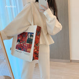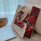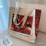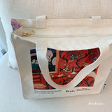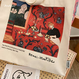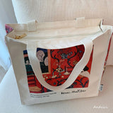 色彩の魔術師と呼ばれた画家アンリ・マティスの『赤のハーモニー』を描いたトートバッグ。果物皿を手に取っているメイド、蔦草の装飾模様などが鮮やかに描かれています。厚手のキャンバス生地で作られており、たっぷりの収納力が嬉しい。内側にはポケットが付属しています。パソコンやお気に入りの本を詰めてお出掛けしてみて。