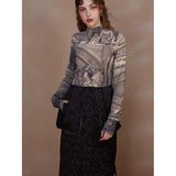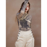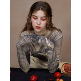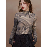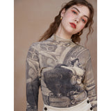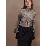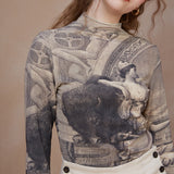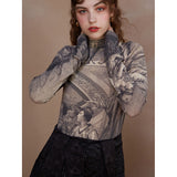 ルネサンス時代の絵画を大胆に描いたスリムトップス。現実の姿と理想の美を、明暗で巧みに表現したアイテム。古い価値観と新しい思想が交錯する、文化の十字路。建築と彫刻が美しく融合した空間美。光と影を微細な筆致で描いています。