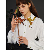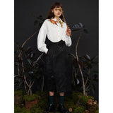 花に遊ぶキツネを襟に刺繍したブラウス。ゆったりとしたお袖が特徴的。瑞々しい薫りを漂わせた風に舞う花に遊ぶキツネが愛らしい。花びらは春日に照らされ光り、キツネは春の到来を喜んでいるみたい。