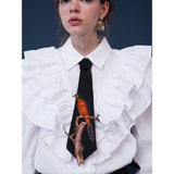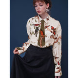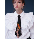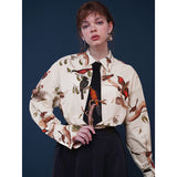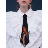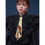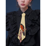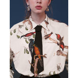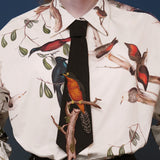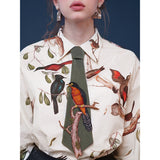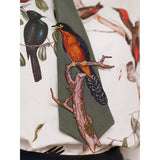 枝に止まって遊ぶ小鳥を刺繍したネクタイ。色鮮やかな羽を休めて、張り出した木の枝に止まって四方を眺め見渡す小鳥。隆々とした木の幹ときめ細かい羽根が見事に刺繍されています。美しき花鳥の姿を精緻に描いたアイテム。