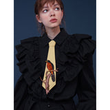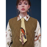 枝に遊ぶ小鳥の刺繍ネクタイ