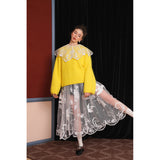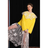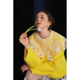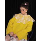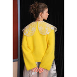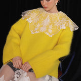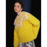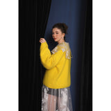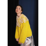 爽やかで鮮烈な透明感のあるイエロー。鮮やかな色合いが印象的なアンゴラニットのセーター。ふんわりとしたやわらかな生地感が特徴的。シンプルなシルエットながら、目が覚めるようなカラーが存在感を放っています。