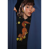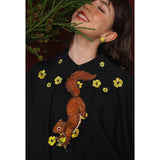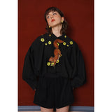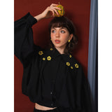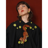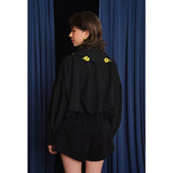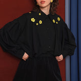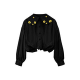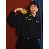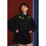 キンポウゲの花の刺繍ショートブラウス - Black