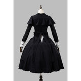 クラシカルなゴシックエレガンスをまとったケープワンピース。まるで古い洋館の肖像画から抜け出したような気品を醸し出し、胸元のピンタックが端正な美しさを強調しつつ、肩にかかる短いケープが影のようにシルエットを包み込みます。縁に施されたフリルが静かな重厚感を添え、分量感のあるスカートが優雅に広がり、クラシックとゴシックが共存する物語めいた佇まいを完成させています。