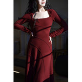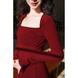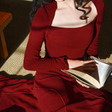 クラシックかつ洗練された雰囲気を演出してくれるスクエアネックのワンピース。暖かなニット生地で仕立てられたアイテム。スクエアネックのデザインがデコルテを美しく見せ、フィット感のあるウエストラインが女性らしいシルエットを強調します。シンプルながらも細部にこだわりが感じられます。
