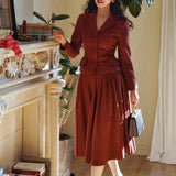 映画女優のクラシックジャケットとフレアプリーツスカート - Garnet