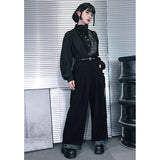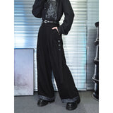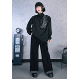 静謐な黒に潜む毒の美を纏ったようなワイドパンツ。ワイドシルエットの落ち感が優雅な余韻を描き、裾に潜む五毒──蛇、蟇、百足、蠍、蜥蜴──が密やかに蠢く。裏地に忍ばせた模様が、歩みとともにわずかに覗くたび、禁忌の力を秘めた護符のように光を返しています。端正なテーラードラインとアジア的神秘が融け合う、静かにして挑発的なブラックパンツ。