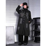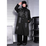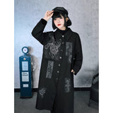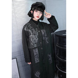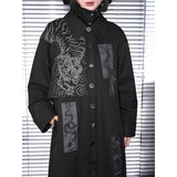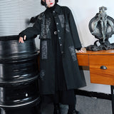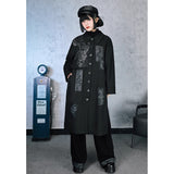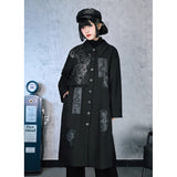 静寂の闇に潜む毒と神秘を纏うようなコート。漆黒の布地に浮かぶ五毒──蛇、蟇、百足、蠍、蜥蜴──が、まるで封印の護符のように配置され、陰陽の均衡を象徴しています。パッチワークのように配された文様は、呪術と芸術の狭間を歩むかのような異界のリズムを奏で、身にまとう者の内に眠る力を呼び覚ます。構築的なシルエットと深い黒が織りなすその姿は、毒を美に昇華させた儀式の装束のようなアイテム。