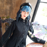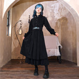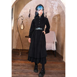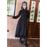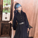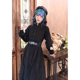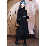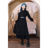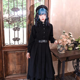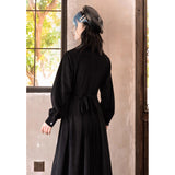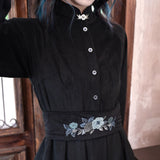 深みのある黒の生地に、静かな気品を纏ったコルセットワンピース。高めのスタンドカラーと小さなボタンが端正な印象を与え、ウエストにあしらわれた椿の花と鶯の刺繍が、闇夜に咲く花のように控えめな美しさを添えています。重ねられたスカートのレイヤーが奥行きを生み、動くたびに柔らかく広がって、静謐なエレガンスを演出。シンプルながらも構築的なシルエットで、古典とモードの境界をなぞるように仕立てられたアイテム。