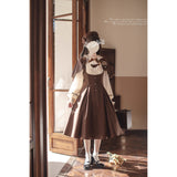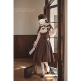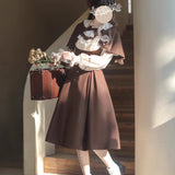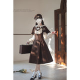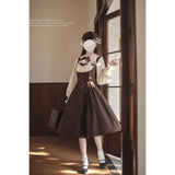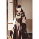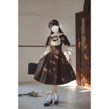 英国令嬢のクラシカルドッキングワンピースとケープ - Brown