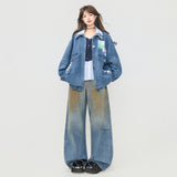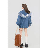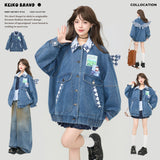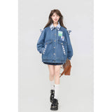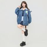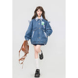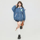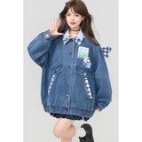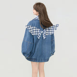 ゆったりとしたオーバーサイズのシルエットに、丸みを帯びた袖とギャザーを寄せた裾がやさしいボリューム感が印象的なデニムジャケット。素朴なデニム地の中に遊び心を忍ばせた一着で、チェック柄の襟やポケット縁、さりげなく配されたワッペンや刺繍が物語の断片のように散りばめられています。背中には大きなリボンモチーフが羽のように広がり、カジュアルでありながらもどこか夢想的。で着る人を日常から少しだけ物語の世界へ連れ出すようなアイテム。