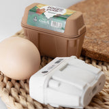 卵パックをモチーフにしたユニークなデザインのAirPodsケース。まるでスーパーで見かける「2個入りの卵パック」のように見える質感とラベルが施されており、ケースを開けると中にAirPodsが収まる仕組みになっています。。