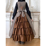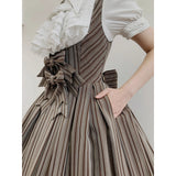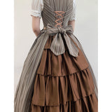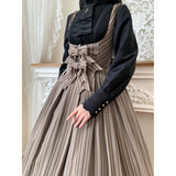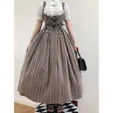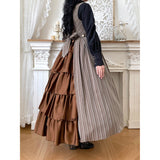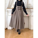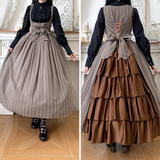 西洋令嬢の縦縞クラシカルジャンパースカート - Light Brown[2026年1月上旬-1月下旬発送予定]