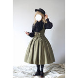 西洋令嬢の縦縞クラシカルジャンパースカート - Moss Green[2026年1月上旬-1月下旬発送予定]