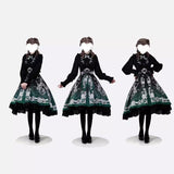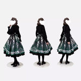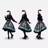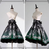 銀白の花蔦柄コルセットスカート - Dark Green Gradient[2026年6月上旬-6月下旬発送予定]