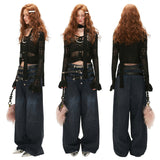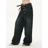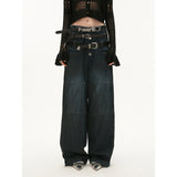 ゆったりとしたシルエットが特徴的なワイドレッグデニム。ベルトを三連でつけることができるデザイン。ショート丈のトップスと合わせると、カジュアルで洗練されたコーデに。等身大の日常の中で、カジュアルに着こなして。