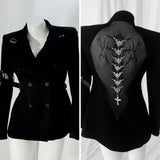 脊椎骨格のゴシックジャケット(ダブルブレスト) | See-through Mesh Back