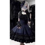 幻想的で少し危うい美しさを纏ったアイテム。ジャンパースカートは、幾重にも重なる胸元のフリルが重厚な陰影を生み、ウエストから広がる構築的が特徴的。裾に重ねられたティアードフリルは、歩くたびに波のように揺れ、静かなドラマを描き出しています。ブラウスは、広がる袖口のフリルが優雅に手元を飾り、儚さを漂わせる佇まいとなっています。