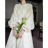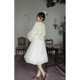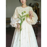 朝霧の花の刺繍ヴィクトリアンワンピース