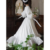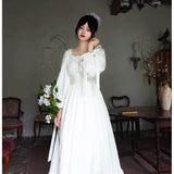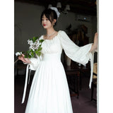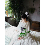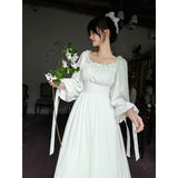 19世紀の庭園を散策する伯爵令嬢みたいに演出してくれるワンピース。繊細な凹凸感のあるエンボス調の生地が特徴的。ネックラインにはフリルが施されており、裾に向かってふんわりと広がるボリューム感のあるフレアシルエットが、歩くたびに優雅に揺れて、気品と可憐さを引き立てます。