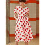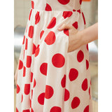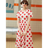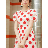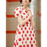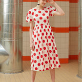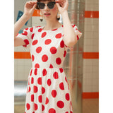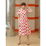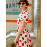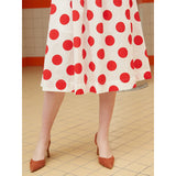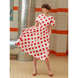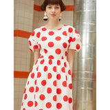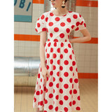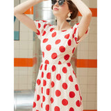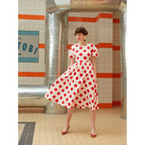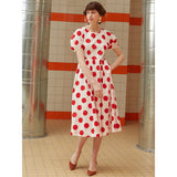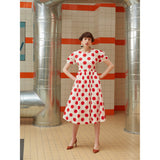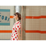 1960年代のレトロな雰囲気が漂う水玉柄のワンピース。往年の銀幕女優を彷彿とさせてくれる。フェミニンと品格を際立たせてくれる60年代ルック。ふんわりと膨らむ優雅なシルエットに魅了される。