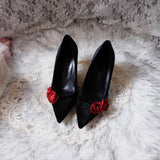 暗夜の薔薇のポインテッドトゥヒールパンプス