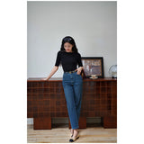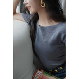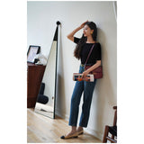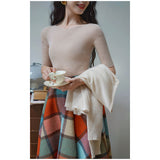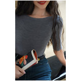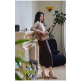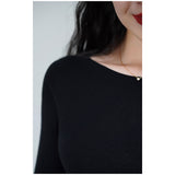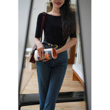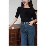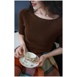 ウエストラインを美しく魅せてくれる五分袖のスリムニットトップス。細部まで計算された細やかなディテール。滑らかな曲線を描く肩のラインがエレガントな雰囲気を演出してくれる。