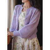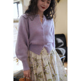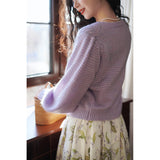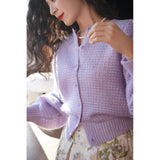 春の訪れを告げる、鮮やかな色彩を纏って。モヘアならではのふんわりとした柔らかさが特徴的なニットカーディガン。ほどよいボリュームのある袖がフェミニンで可愛らしい印象を与えます。繊細な透かし編みは咲き始めた野花のような儚い透明感を宿しています。