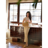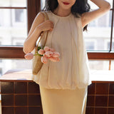 丸みを帯びた花びらのようなシルエットのコクーントップス。柔らかな光沢を湛えたジャカードストライプのアイテム。風を含んで膨らんだようなフォルムが、軽やかさとフェミニンな魅力を引き立てます。気取らず、けれど存在感のある、抜け感と品の良さを両立しています。