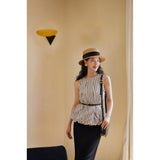 丸みを帯びた花びらのようなシルエットのコクーントップス。柔らかな光沢を湛えたジャカードストライプのアイテム。風を含んで膨らんだようなフォルムが、軽やかさとフェミニンな魅力を引き立てます。気取らず、けれど存在感のある、抜け感と品の良さを両立しています。