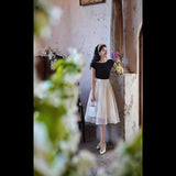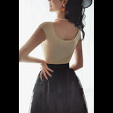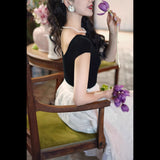 日常の中にそっと香る、控えめな美意識。フェミニンにも、モードにも着こなせるサマーニットトップス。ミニマルなオフショルダーデザインが肩元から首筋までのラインを美しく引き立て、背中のカットアウトが思わず目を引きます。包み込むようなスリーブラインが腕をやさしくカバーし、体のラインを綺麗に見せながら、洗練された印象に。フラワースカートと合わせれば、まるでプロヴァンスの花畑を歩く映画のヒロインに。