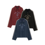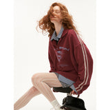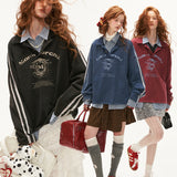 カレッジスタイルのプリントが施されたオーバーサイズなポロスウェット。洗いざらして色褪せたような風合いを出したアメリカンレトロなスタイル。ルーズになりすぎない、カジュアルさが魅力。現代的なエッジが融合したアイテム。