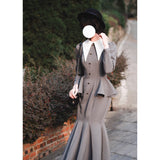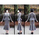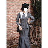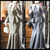 1950年代の銀幕女優のファッションは半世紀以上経った今でも色褪せない憧れの的。品格を際立たせてくれるエレガントでクラシックなワンピース。大きなホワイトカラーが特徴的で、現代的な洗練された雰囲気を演出しています。ウエストラインから広がるペプラムと、マーメイドスカートのような裾部分のフレアは、華やかな女性らしさを強調したニュールック。