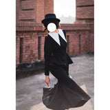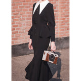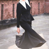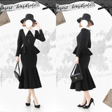 1950年代の銀幕女優のファッションは半世紀以上経った今でも色褪せない憧れの的。品格を際立たせてくれるエレガントでクラシックなワンピース。大きなホワイトカラーが特徴的で、現代的な洗練された雰囲気を演出しています。ウエストラインから広がるペプラムと、マーメイドスカートのような裾部分のフレアは、華やかな女性らしさを強調したニュールック。