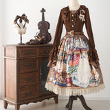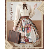 豪華な邸宅で飼われた白猫を油彩で描いたスカート。重厚な本、色鮮やかな花、ティーカップや時計など、優雅で穏やかな日常の暮らしが、鮮やかなタッチで丁寧に描かれています。裾部分はティアードフリルとチュールの重ね仕立てとなっており、やわらかな広がりと奥行きを演出しています。