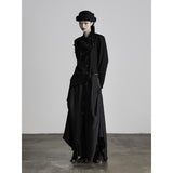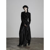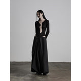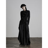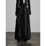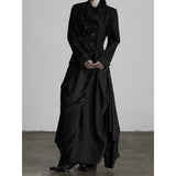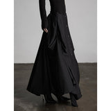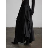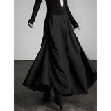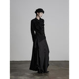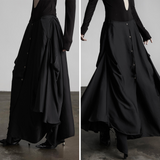 ドラマチックな美しさを持ったアシンメトリーなロングスカート。ゆったりとしたシルエットにより、動きに合わせて美しいドレープを生み出し、ボタンやギャザーのディテールがクラシカルでありながらモードな雰囲気を醸し出しています。