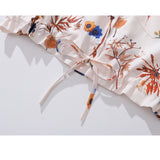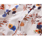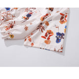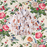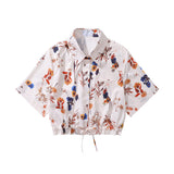 木々の葉擦れの音が奏でる息吹の交響曲。藍色、橙色、茶色など、色とりどりの植物を描いたショート丈のシャツ。濃厚な森の香りが漂ってくるみたい。そこは、風のささやきに満ちた楽園。デニムなどカジュアルなボトムスと合わせてみて。