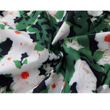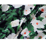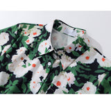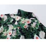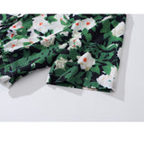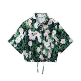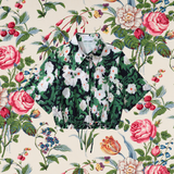 静寂の中で際立つ美しさ。深緑に包まれた深い森に、凛と咲く白椿の花を描いたショート丈のシャツ。汚れなき心を持つ乙女の純潔の象徴。妖精たちが集う森の楽園に誘わrたみたい。デニムなどカジュアルなボトムスと合わせてみて。