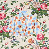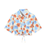 風に揺られて舞う姿は、自由奔放な踊り子みたい。季節の移ろいを象徴する存在であるヒナゲシの花を描いたショート丈のシャツ。燃え広がるように咲く鮮やかで情熱的な花々。デニムなどカジュアルなボトムスと合わせてみて。