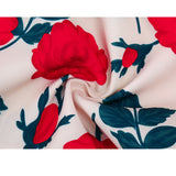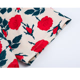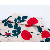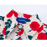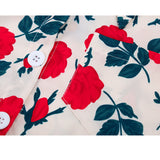 圧倒的な美しさで、刹那を永遠に変える魔力の持ち主である深紅の薔薇。深い色と芳香で、人々を魅了する官能の化身を描いたショート丈のシャツ。甘美で危険な誘惑の象徴。運命を象徴する神秘的な花。デニムなどカジュアルなボトムスと合わせてみて。