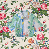さまざまな色が奏でる色彩の交響曲。緑豊かな森をお絵描きしたようなショート丈のシャツ。絶えず変化し続ける、楽しさと驚きの視覚表現。描くたびに新しい世界が広がります。デニムなどカジュアルなボトムスと合わせてみて。
