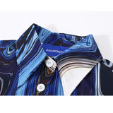 紺藍の抽象画ショートシャツ
